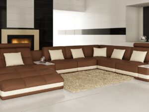 Divani Casa 6143 – Modern Brown + White Bonded Leather U Shaped Sectional Sofa