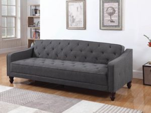 Comfort and glamour elegantly combine to form a sleek, sophisticated design. With chic style and exquisite comfort, this sofa bed is a fabulous addition to any home. Trendy button tufting adorns its seat and arms, while subtle, dark grey, woven fabric upholstery adds a touch of softness. Sinuous spring decking and high density foam offer a comfortable place to sit or stretch out. Constructed with a kiln-dried hardwood frame and solid hardwood legs, this sofa bed is crafted for durability.