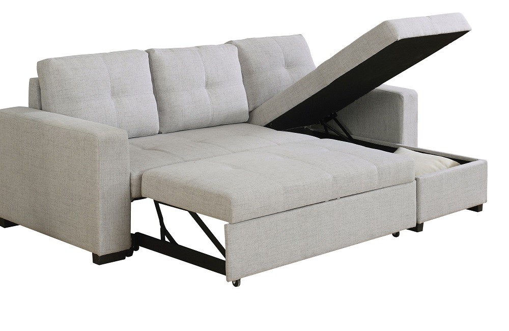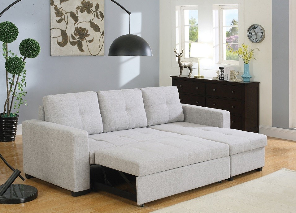 Having a sectional that can double as a pull out bed is perfect for small space living. This beige sectional also has the added benefit of being able to reverse the chaise between the left and right side.
