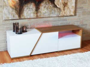 Whether kicking back and relaxing in front of the tube after a long day of work or throwing on your favorite flick with a loved one after a date night out, your entertainment center plays an important role in your abode. Providing plenty of space to place your flat screen and more, this TV stand features a stylish silhouette and a beautiful tabletop. Plus, it includes three compartments with stylish LED lighting for housing your cable box, media player, and more. Measuring 20”H 73”W 18”D, it accommodates an 90” TV.